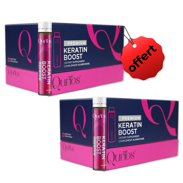 Keratin Boost PREMIUM® de Qurios revitalise les cheveux en profondeur grâce à sa formule innovante à base de Cynatine HNS, une kératine brevetée qui renforce la fibre capillaire de l’intérieur.